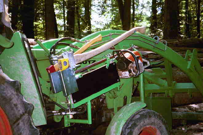 Die durchdachte Kombination von Motorsägehalter und Werkzeughalter